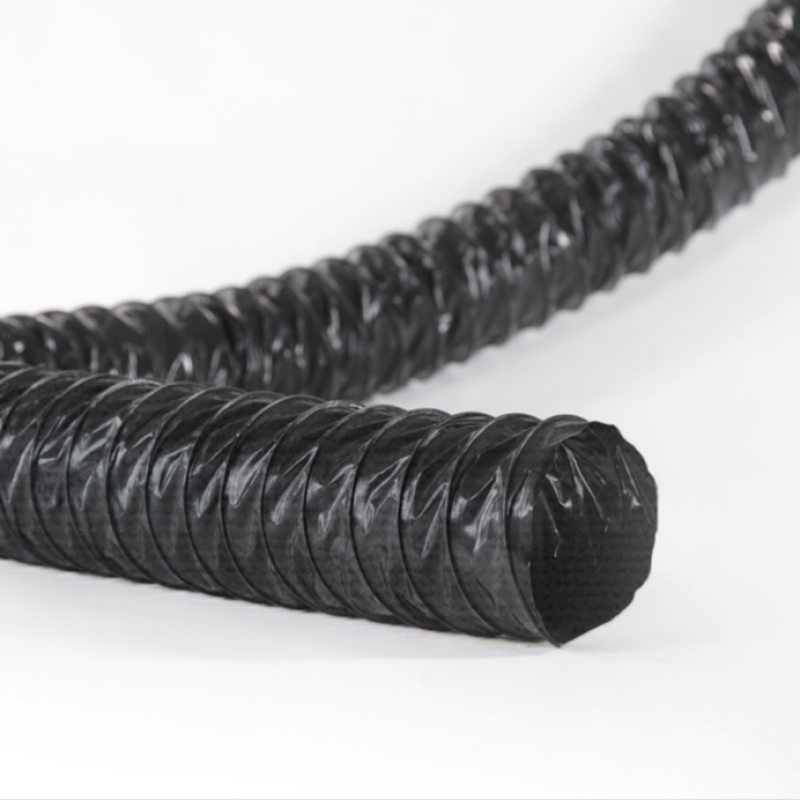Condotto flessibile realizzato con tessuto poliestere spalmato in resine poliolefiniche additivate e spirale in filo di acciaio armonico.