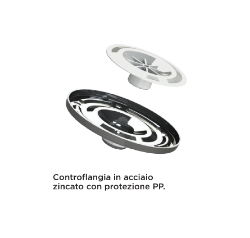 Posizionata appena sopra la connessione acqua (5), montata sulla controflangia (3) vi è una calottina in polipropilene (4) che funge da ulteriore protezione in modo che l'acqua potabile non entri mai a contatto con le pareti metalliche del vaso, eliminando così eventuali fenomeni corrosivi, il rischio d’inquinamento del liquido e la possibile formazione di batteri nocivi all’uomo.