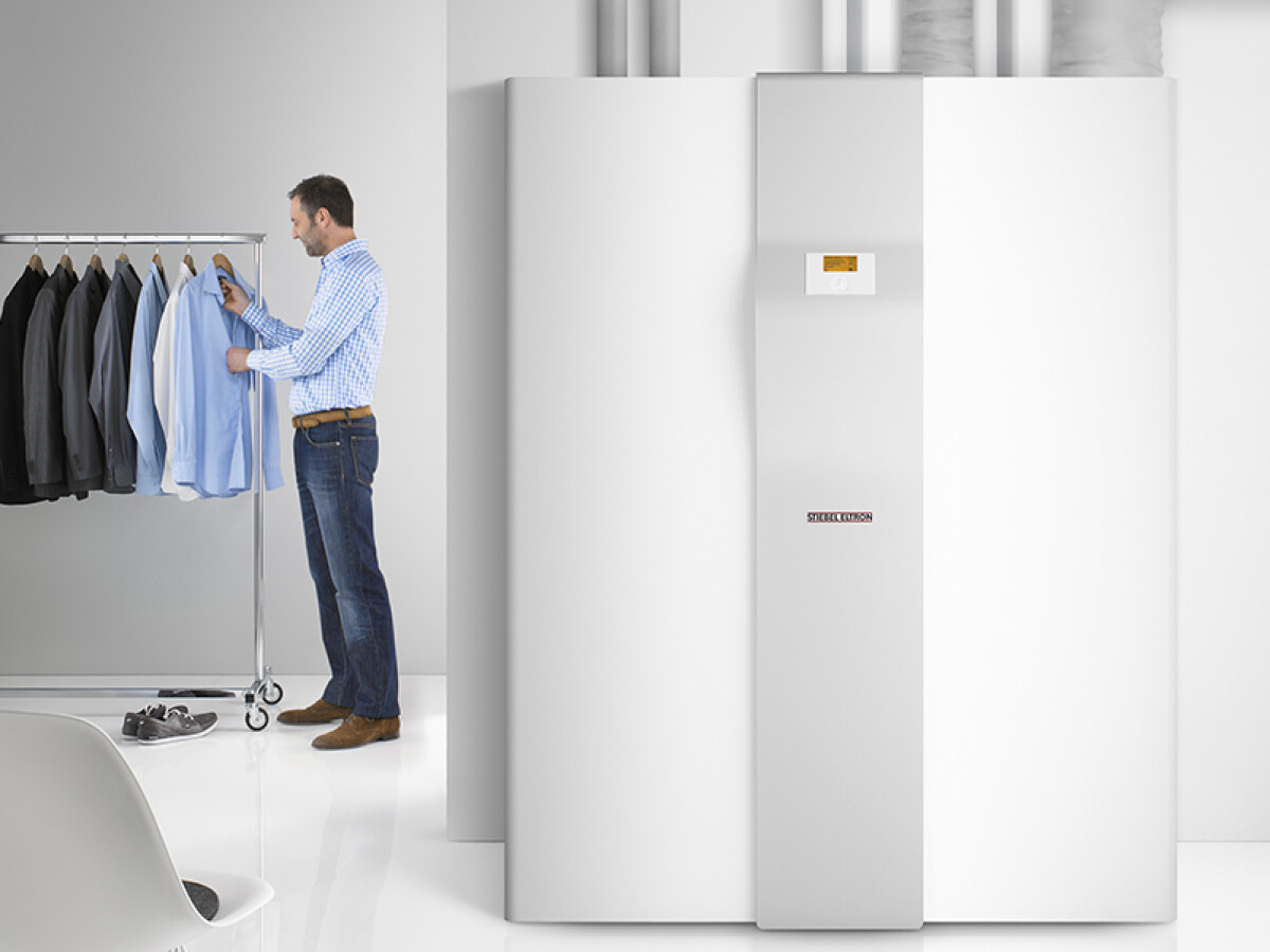 Aggregato compatto Stiebel Eltron LWZ 504 di Enercomb: pompa di calore, accumulo per acqua calda sanitaria e sistema di ventilazione meccanica controllata in un unico corpo