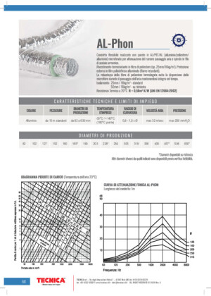 Condotto flessibile realizzato con parete AL/PET/AL (alluminio/poliestere/alluminio) microforato per attenuazione del rumore passaggio aria e spirale in filo di acciao armonico.