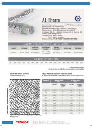 Condotto flessibile realizzato con parete AL/PET/AL (alluminio/poliestere-alluminio) e spirale in filo di acciao armonico.
