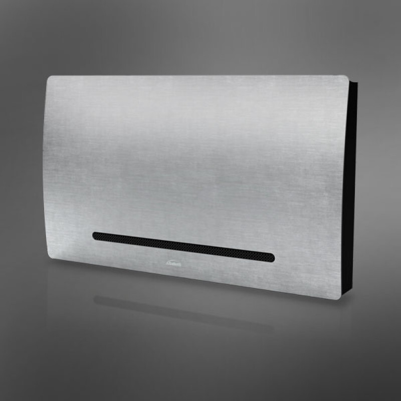 L’estetica moderna e lineare di ART-U è caratterizzata da un elegante pannello frontale curvo in allumino, disponibile sia in colore bianco sia in alluminio naturale spazzolato con fiancate laterali nere, da una griglia superiore con alette orientabili realizzata in alluminio anodizzato, e da una semplice griglia frontale che funge da filtro in acciaio inox e che stabilizza il funzionamento del ventilatore tangenziale.