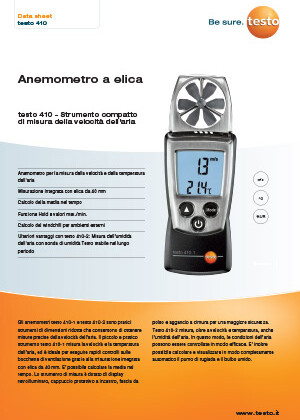 Scheda Anemometro con termometro Testo 410-1