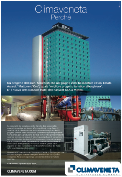 Climaveneta Spa è una delle società leader in Europa per il mercato della climatizzazione, da oltre 40 anni, per il settore commerciale, industriale e residenziale, propone soluzioni efficienti 365 giorni all'anno, con potenze da 1 a 2.400 kW.