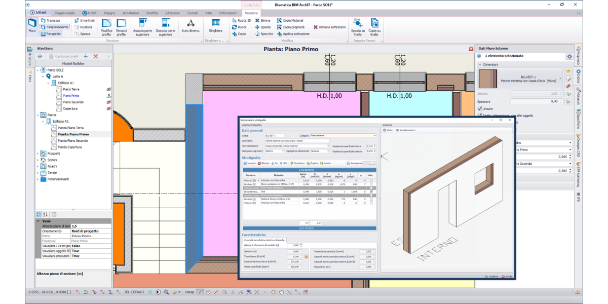 - Disponi di una completa banca dati di componenti verticali e orizzontali con il dettaglio di stratigrafie e materiali che puoi personalizzare.