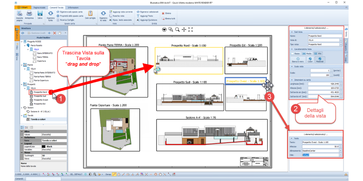 - Tavole grafiche ed elaborati sono ricavati in automatico e il contenuto è dinamicamente adeguato all’evoluzione del progetto.