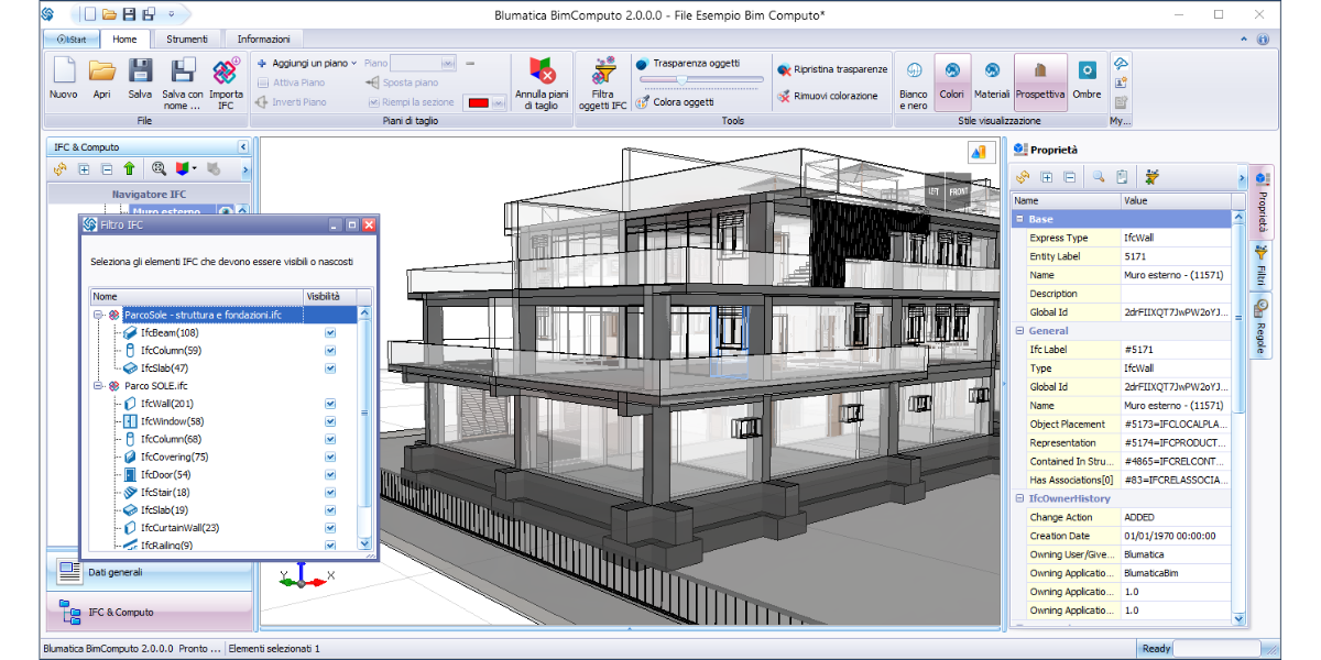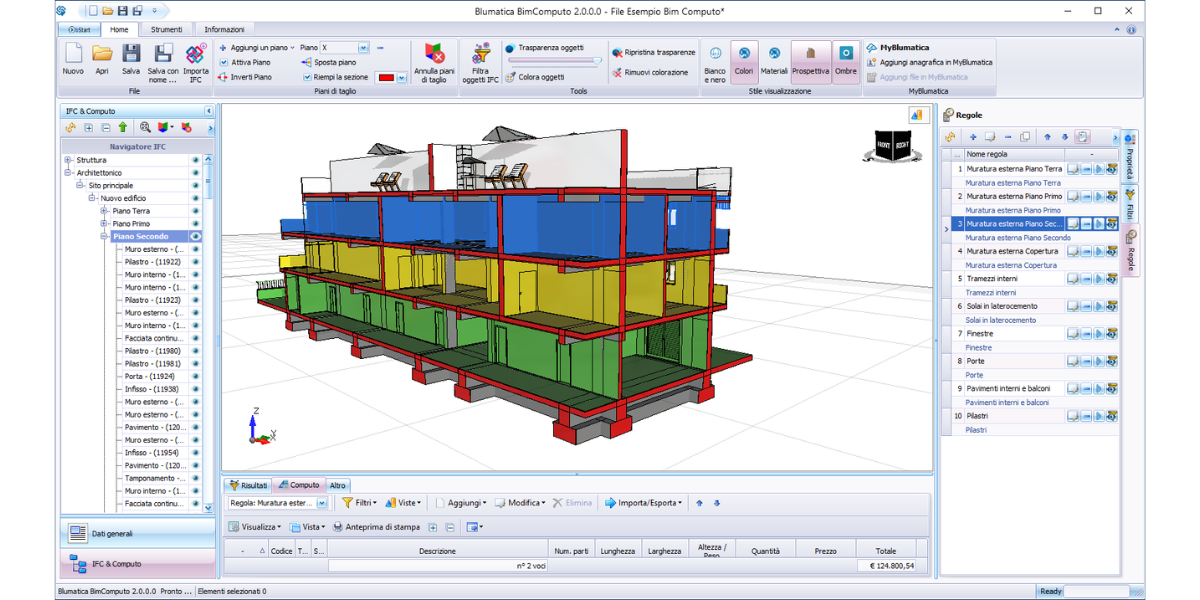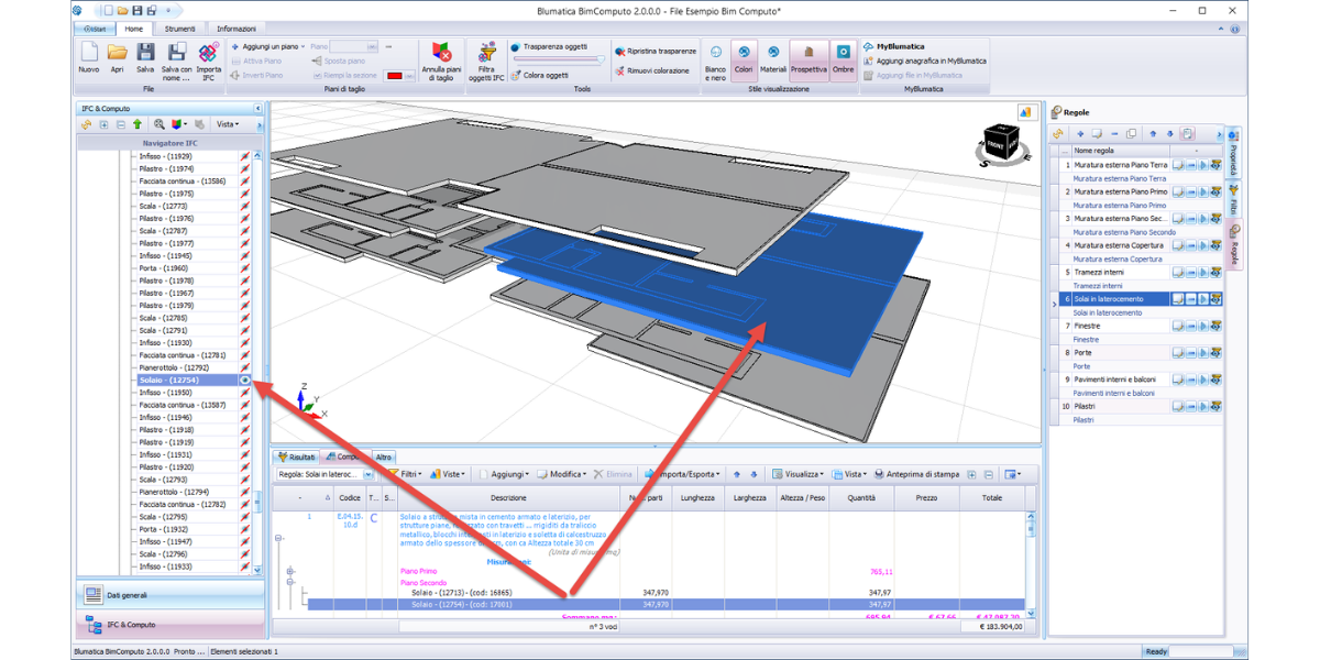 Visualizzazione 3D e definizione del computo metrico estimativo da uno o più file in formato IFC.