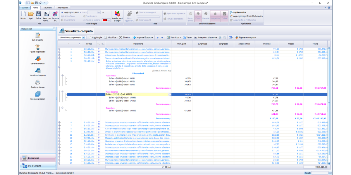 - Dal file di Blumatica Pitagora, realizzato con Blumatica BIM Computo, è possibile elaborare in automatico: