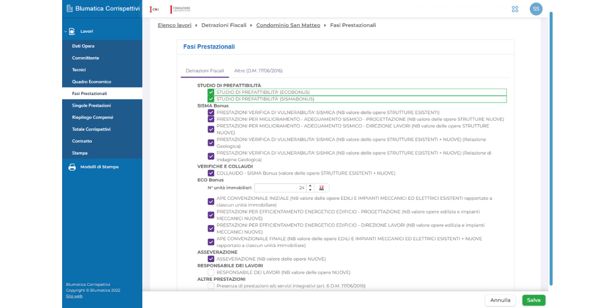 (Eco Bonus, Sisma Bonus o Eco+Sisma Bonus); ritroverai già impostate le principali prestazioni professionali.