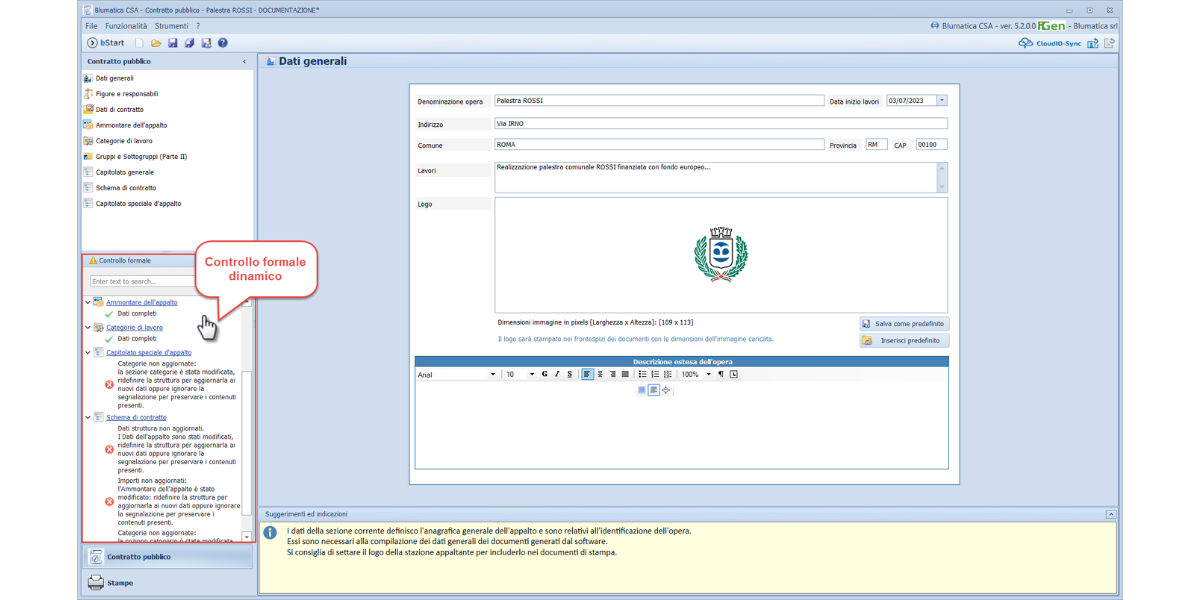 Il controllo formale segnala in tempo reale le azioni da intraprendere per una corretta elaborazione dei documenti.
