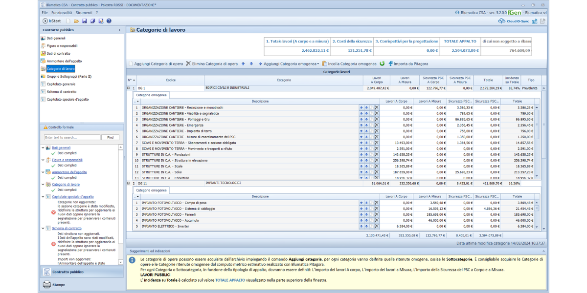 Definisci l’ammontare dell’appalto, le categorie dei lavori nonché le sottocategorie per la definizione automatica della Parte II del capitolato speciale d’appalto.