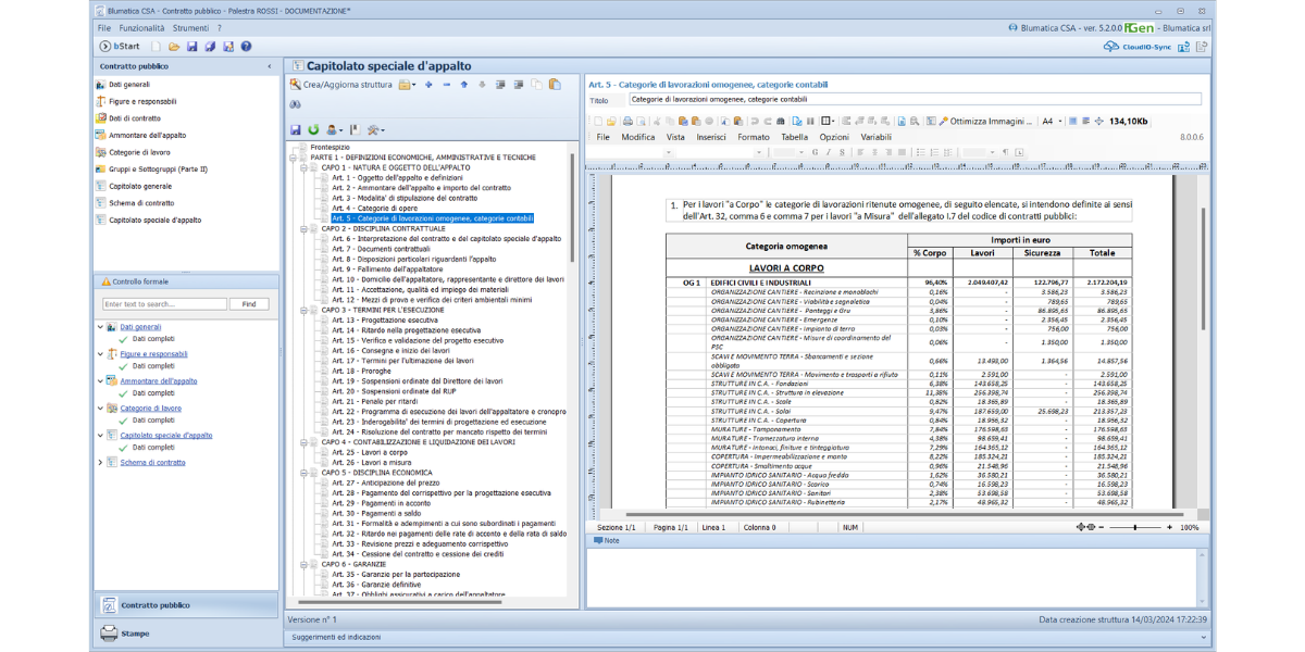 Dal computo elaborato con Blumatica Pitagora ottieni i contenuti e l’aggregazione delle categorie omogenee per la disciplina della contabilità dei lavori, lo Schema di contratto e il Capitolato speciale d’appalto.