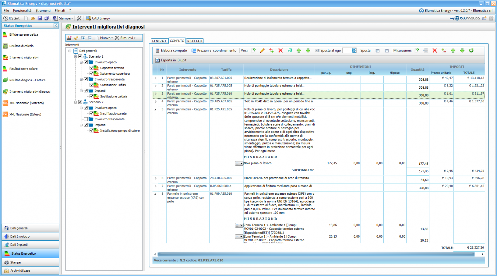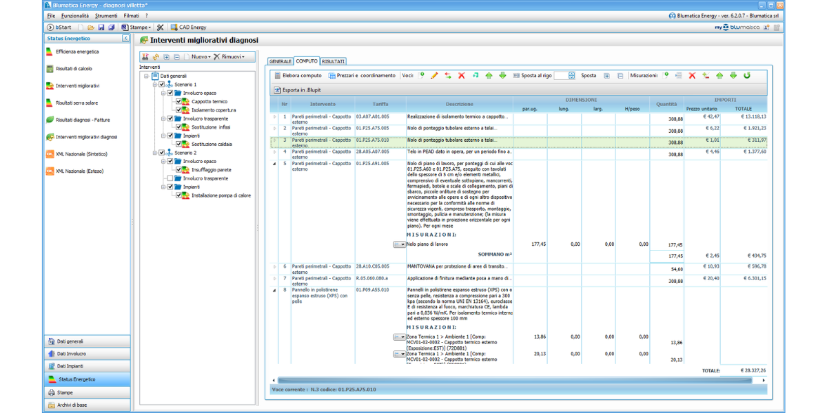 Una specifica funzionalità di computazione (già integrata nel software) supporta il tecnico nella valutazione economica, consentendo di valutare la spesa iniziale da sostenere per gli interventi ottenendo in automatico un dettagliato computo metrico estimativo.