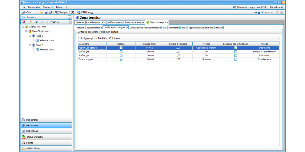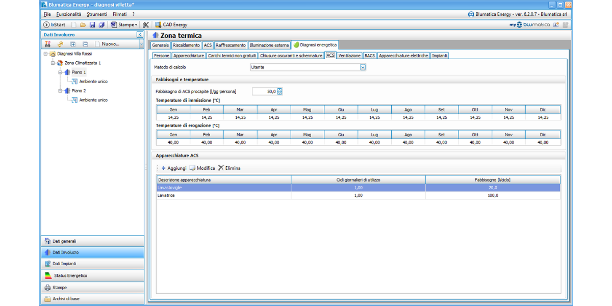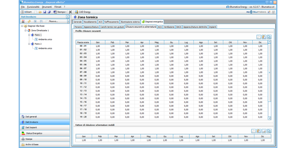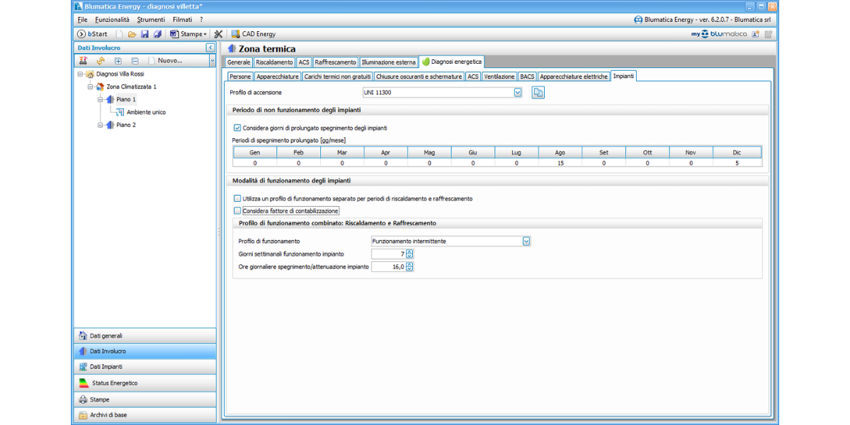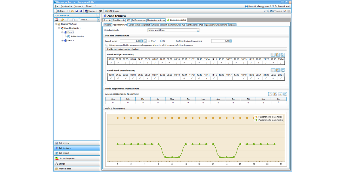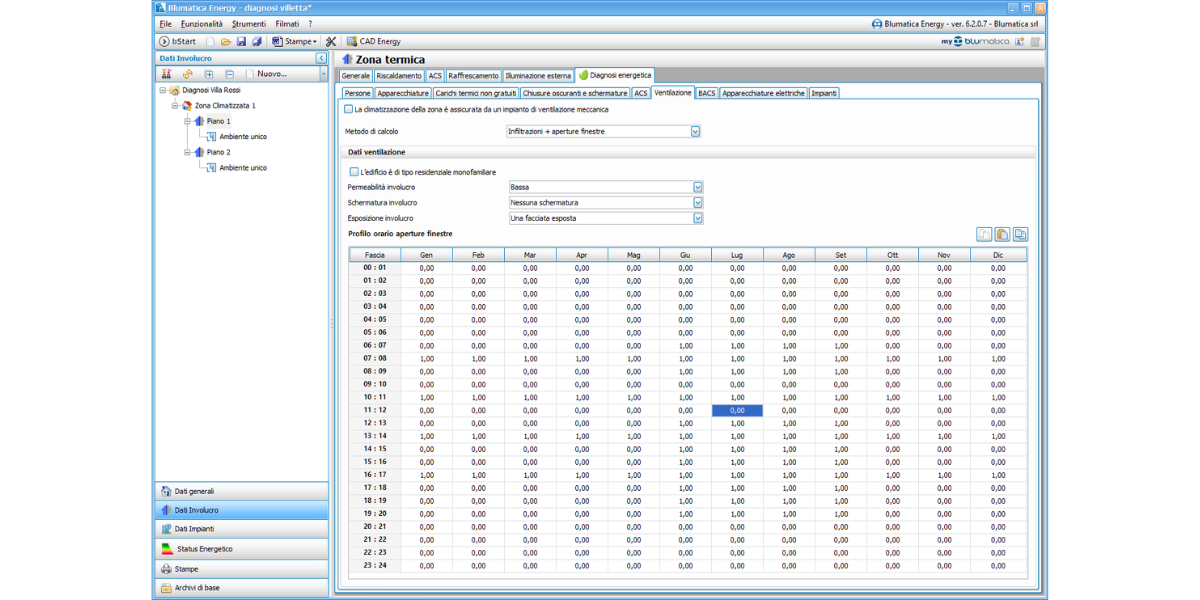 Il software consente di personalizzare tutti i parametri di input in funzione dell’effettivo uso del sistema fabbricato-impianto: