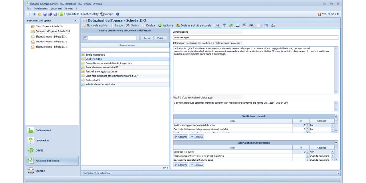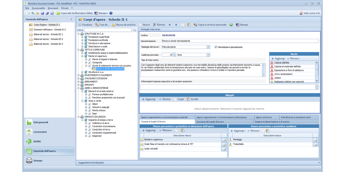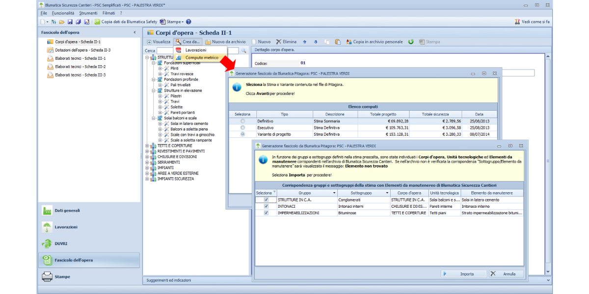 Ricavi, in automatico dal PSC, i corpi d’opera, le unità tecnologiche, gli elementi manutenibili e le relative schede di intervento (Scheda II-1) già precompilate