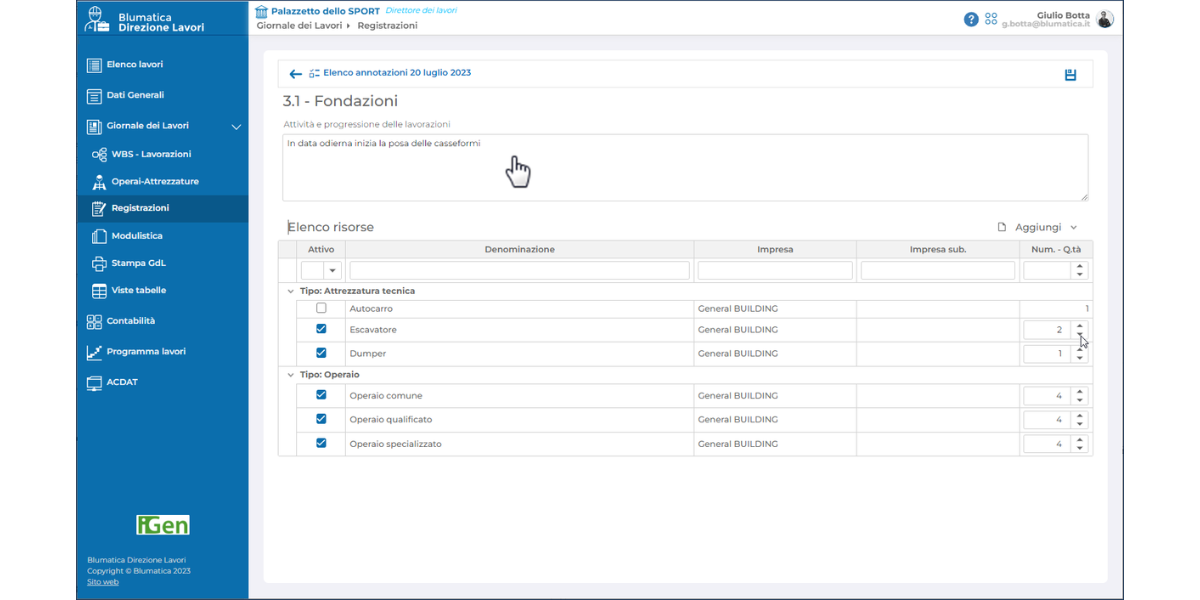Applicazione cloud per la compilazione in mobilità del giornale dei lavori e la produzione automatica della documentazione.