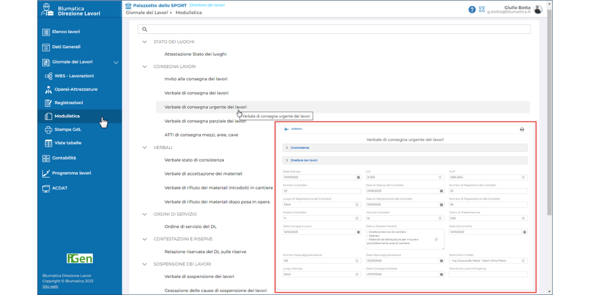 Riproduci tutta la documentazione (ordini di servizio, disposizioni di servizio, consegna dei lavori, inizio lavori, verbali, ecc.).