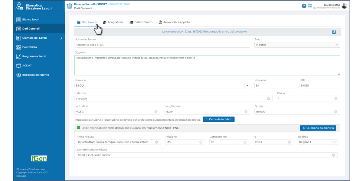 Per lavori finanziati con fondi dell’unione europea (PNRR), i documenti generati dall’applicazione riportano l’emblema dell’Unione europea e la linea di investimento secondo il principio DNSH.
