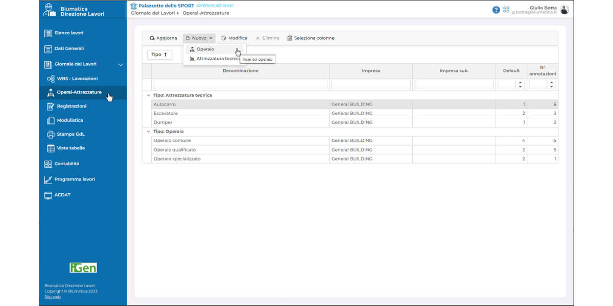 - Predefinisci le tipologie di operai e attrezzature dell’impresa ed eventualmente delle subappaltatrici da indicare nelle Annotazioni