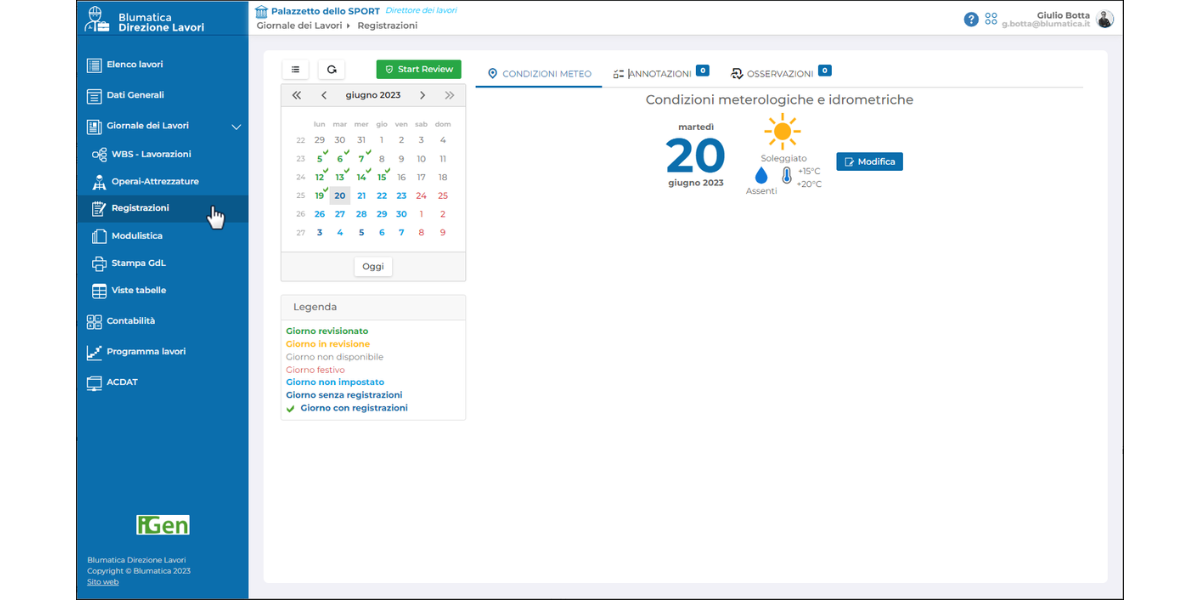 - Inserisci le coordinate del cantiere ed ottieni in automatico le condizioni meteorologiche del giorno