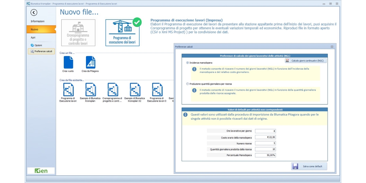 Puoi acquisire il cronoprogramma del progetto di fattibilità e/o del progetto esecutivo quale base di partenza per la definizione del programma di esecuzione dei lavori.