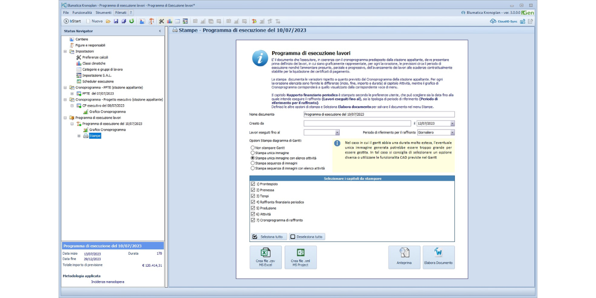 - Puoi archiviare quanti Cronoprogrammi desideri (di progetto, di esecuzione e di raffronto) per documentare lo storico e/o le variazioni