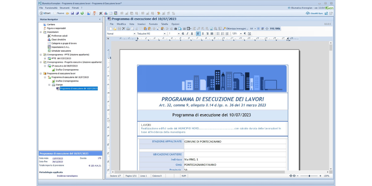 Software per redigere il Programma di esecuzione dei lavori e segnalare nella relazione discostamenti e/o variazioni alla stazione appaltante.