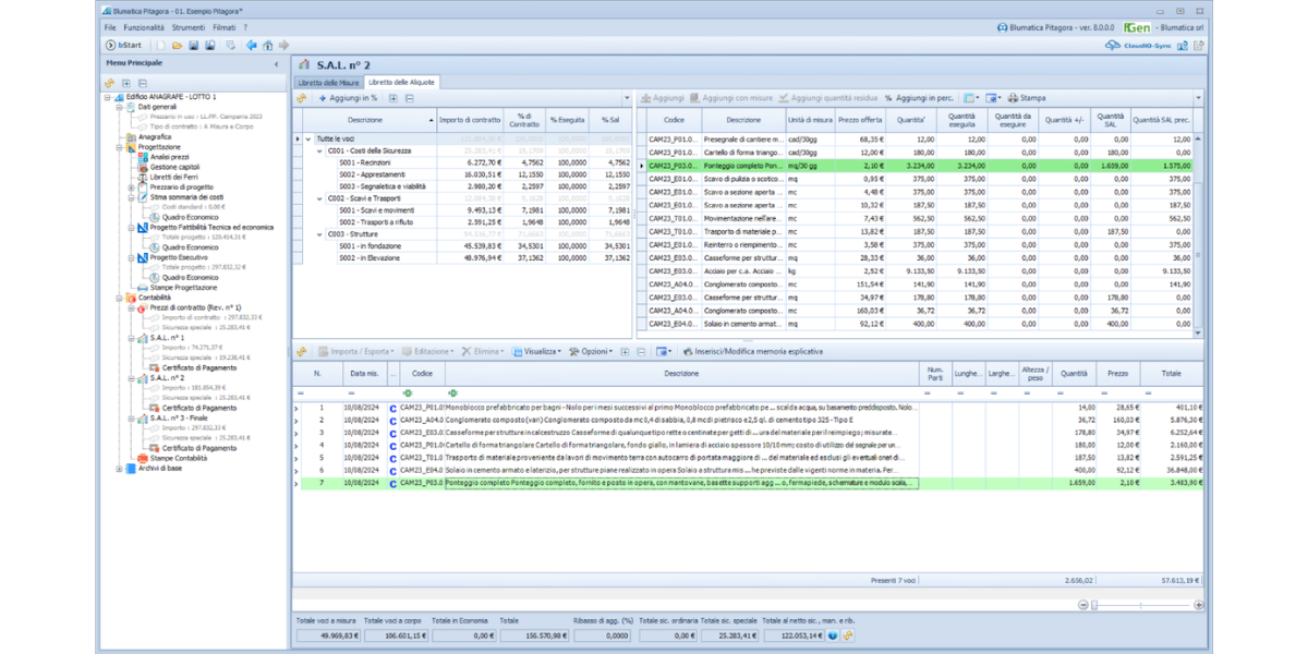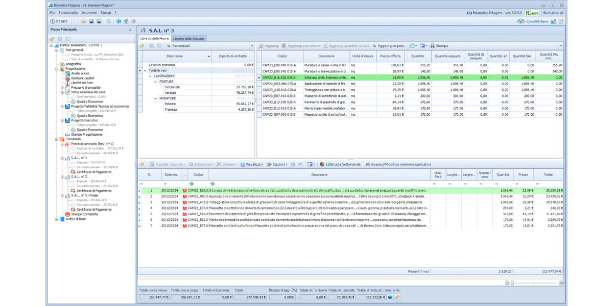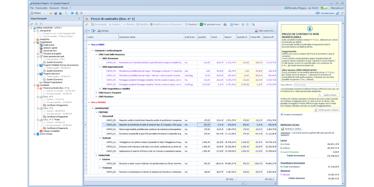In fase di redazione dei S.A.L. hai, in tempo reale, il raffronto rispetto alle quantità di progetto sia per le voci a misura che per quelle a corpo.
