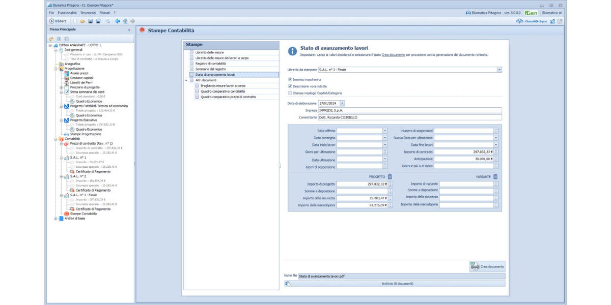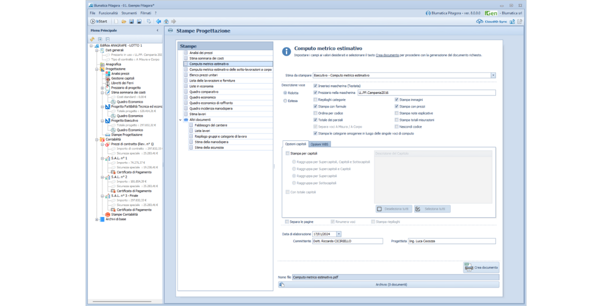 - Stampe di progetto e atti contabili sono riprodotti con formattazione, contenuti e immagini interamente personalizzabili