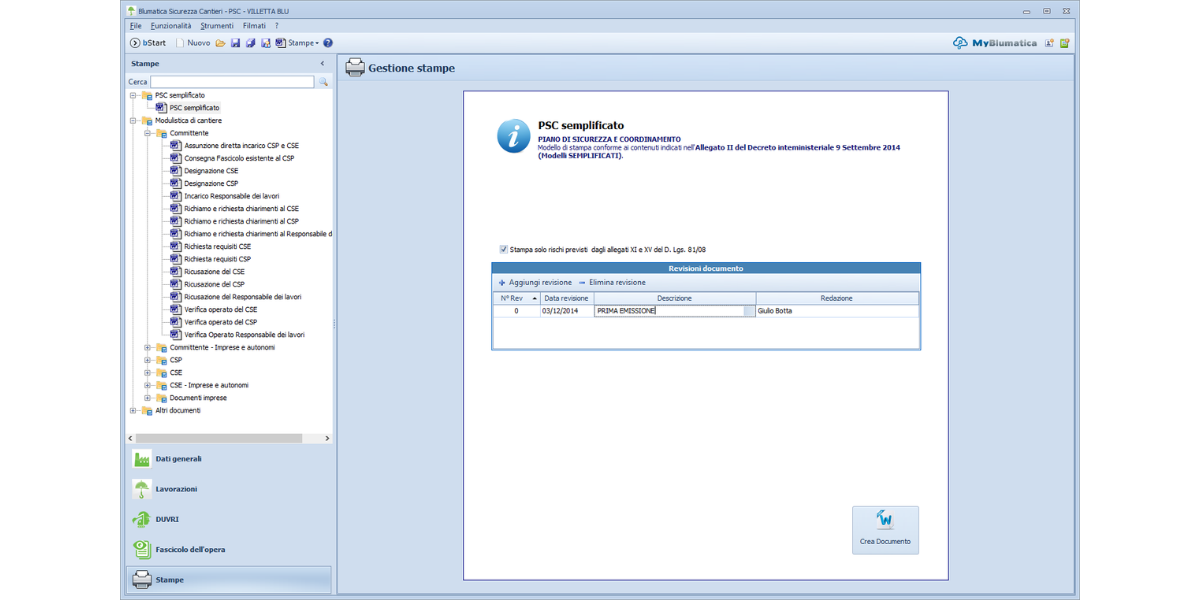 Blumatica PSC Semplificato per aggiornamento piani di sicurezza