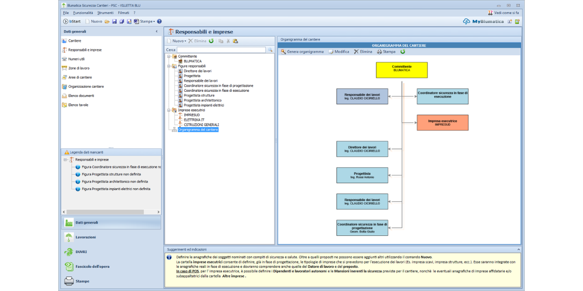 - Analisi e valutazione dei rischi per ogni lavorazione, compresa quella relativa ai rischi specifici: rumore, vibrazioni, chimico, ecc. (tali valutazioni possono essere effettuate con il modulo opzionale Blumatica Rischi Specifici)