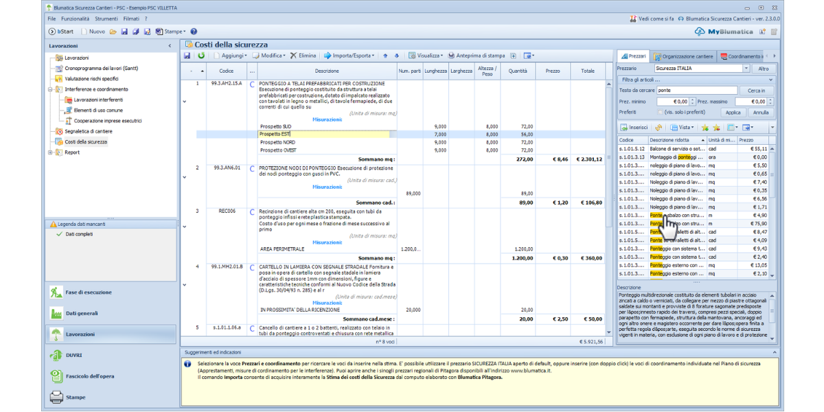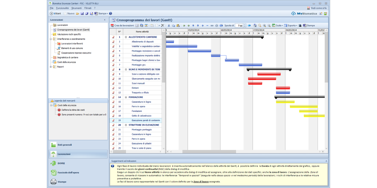 Interscambio con altri software: Puoi ricavare i contenuti dal computo metrico estimativo; assegni le lavorazioni a qualsiasi esecutore ed ottieni in automatico l’eventuale DUVRI; esporti i costi della sicurezza nel computo metrico estimativo; con le lavorazioni acquisisci in automatico anche i contenuti del fascicolo con le caratteristiche tecniche dell’opera (Blumatica Fascicolo è un modulo a parte, integrabile).