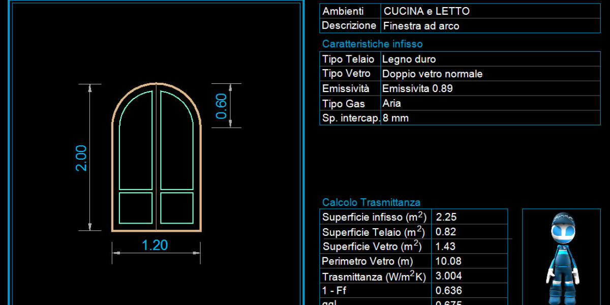 Disegno, catalogazione e calcolo della trasmittanza e di tutti gli altri parametri dei componenti trasparenti.