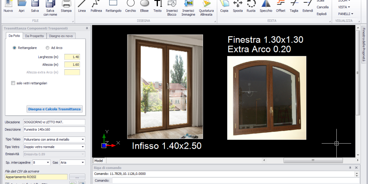Disponi di un CAD autonomo compatibile con file DWG e/o DXF di qualsiasi versione. È un applicativo CAD AUTONOMO per disegnare, catalogare e calcolare la trasmittanza e tutti gli altri parametri dei componenti trasparenti, in modo da impiegarli in qualunque software di Certificazione Energetica