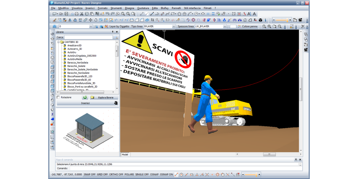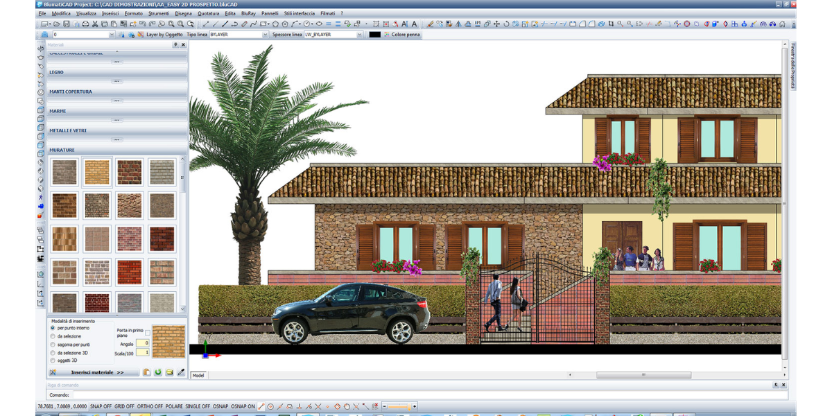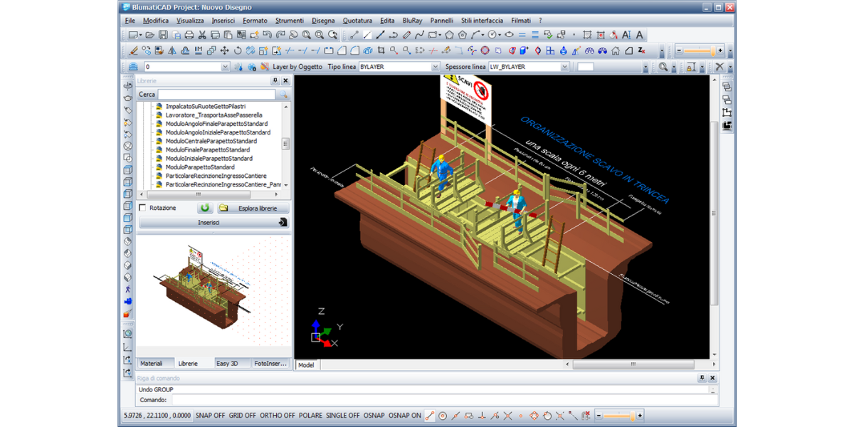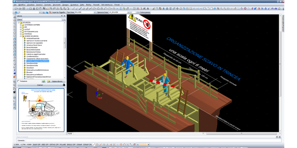 Ricca banca dati di materiali ed elementi per rendere fotorealistici i progetti in maniera estremamente facile e veloce. BlumatiCAD Project dispone, inoltre, di una libreria dedicata alla sicurezza (con oltre 700 blocchi in formato DWG) e di una vastissima libreria di blocchi di architettura 2D (oltre 1000 elementi) e 3D (oltre 300 elementi) utilizzabili per qualsiasi progetto architettonico.