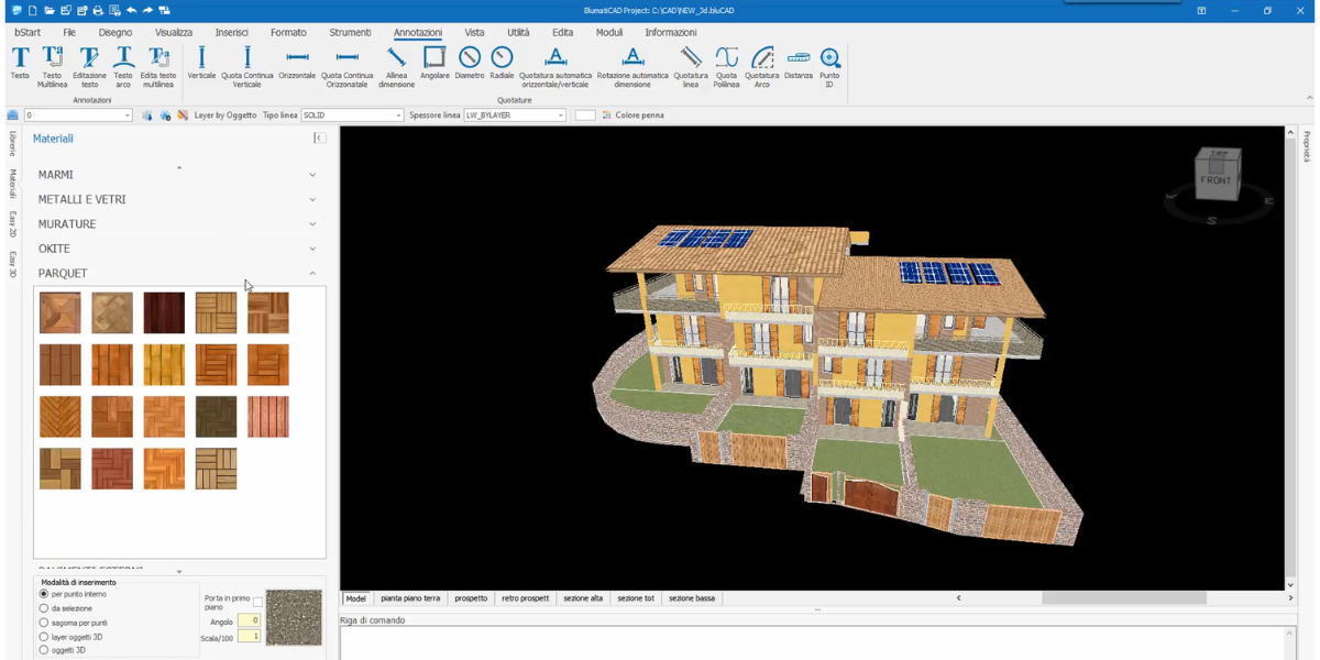 Il software, inoltre, è dotato di una vastissima banca dati di materiali e di un modulo specifico di assegnazione degli stessi ai diversi LAYER che compongono il progetto 3D.