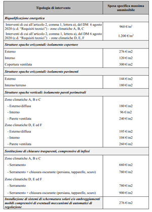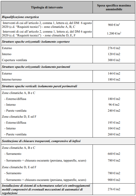 Questi prezzi si applicano alla tipologia di beni che rientrano nell'allegato A (che riportiamo di seguito), mentre per le tipologie di intervento non comprese, i costi massimi saranno calcolati utilizzando i prezziari predisposti dalle regioni e dalle province autonome o i listini delle camere di commercio, industria, artigianato e agricoltura competenti sul territorio dove si trova l'edificio oppure facendo riferimento ai prezziari pubblicati dalla casa editrice DEI.