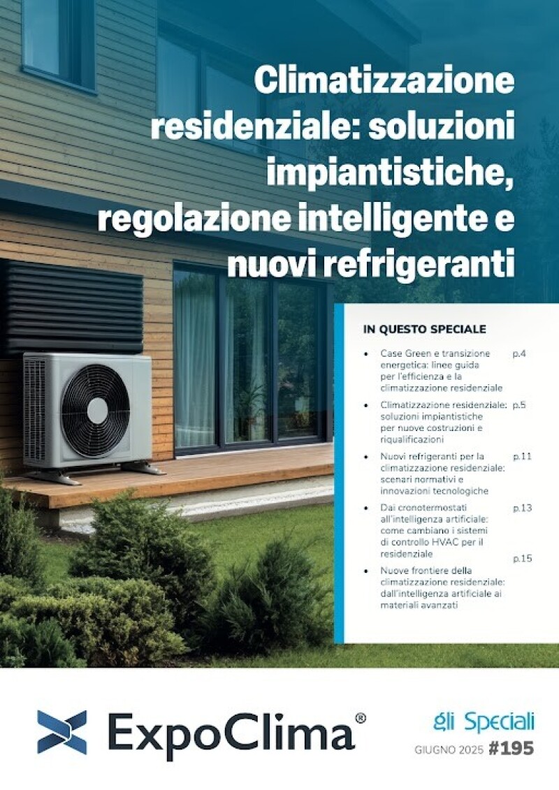 Lo Speciale di giugno è interamente dedicato alla climatizzazione residenziale: un settore in continua evoluzione, dove tecnologie innovative, materiali avanzati e normative ambientali stanno ridefinendo le modalità di progettazione, gestione e riqualificazione degli impianti per il comfort domestico. In questo senso, il progressivo abbandono delle fonti fossili tradizionali, principalmente gas naturale e derivati petroliferi, non è soltanto una necessità ecologica ma anche un imperativo tecnico ed economico che sta ridefinendo l'approccio progettuale agli impianti termotecnici. L'energia solare, nella sua duplice configurazione fotovoltaica e termica, costituisce il pilastro fondamentale della progettazione integrata: i sistemi fotovoltaici consentono la conversione diretta della radiazione solare in energia elettrica, capace di coprire gran parte del fabbisogno energetico degli edifici; parallelamente, i collettori solari termici sfruttano l'assorbimento della radiazione solare per il riscaldamento diretto di fluidi termovettori che trasferiscono l'energia termica acquisita verso accumuli coibentati o circuiti di distribuzione. L'energia geotermica rappresenta un’altra risorsa di straordinaria costanza e affidabilità che sfrutta il gradiente termico naturale del sottosuolo terrestre laddove la temperatura del terreno si mantiene sostanzialmente costante costituendo un'eccellente sorgente termica per sistemi a pompa di calore. I combustibili di origine organica quali biomasse e biogas sono un’ulteriore risorsa energetica alternativa, utile soprattutto negli interventi riqualificativi che presentino criticità particolari, ad esempio in zone climatiche particolarmente rigide dove le pompe di calore potrebbero riscontrare difficoltà di funzionamento oppure come sostituto di combustibili fossili negli impianti tradizionali e nei generatori di calore degli impianti ibridi.