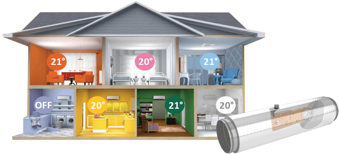 Uno dei punti di forza di Comfort One è il sistema Thermolocal, un dispositivo esclusivo sviluppato per gestire in modo preciso la distribuzione dell’aria nelle diverse stanze. Grazie a un algoritmo interno, Thermolocal modula la portata d’aria per ogni ambiente in base al setpoint impostato dal cliente e alla curva di lavoro del ventilatore. Questo approccio consente di ottenere una termoregolazione puntuale e personalizzata, con il vantaggio di garantire comfort costante anche in edifici pluripiano o con esigenze complesse di climatizzazione.