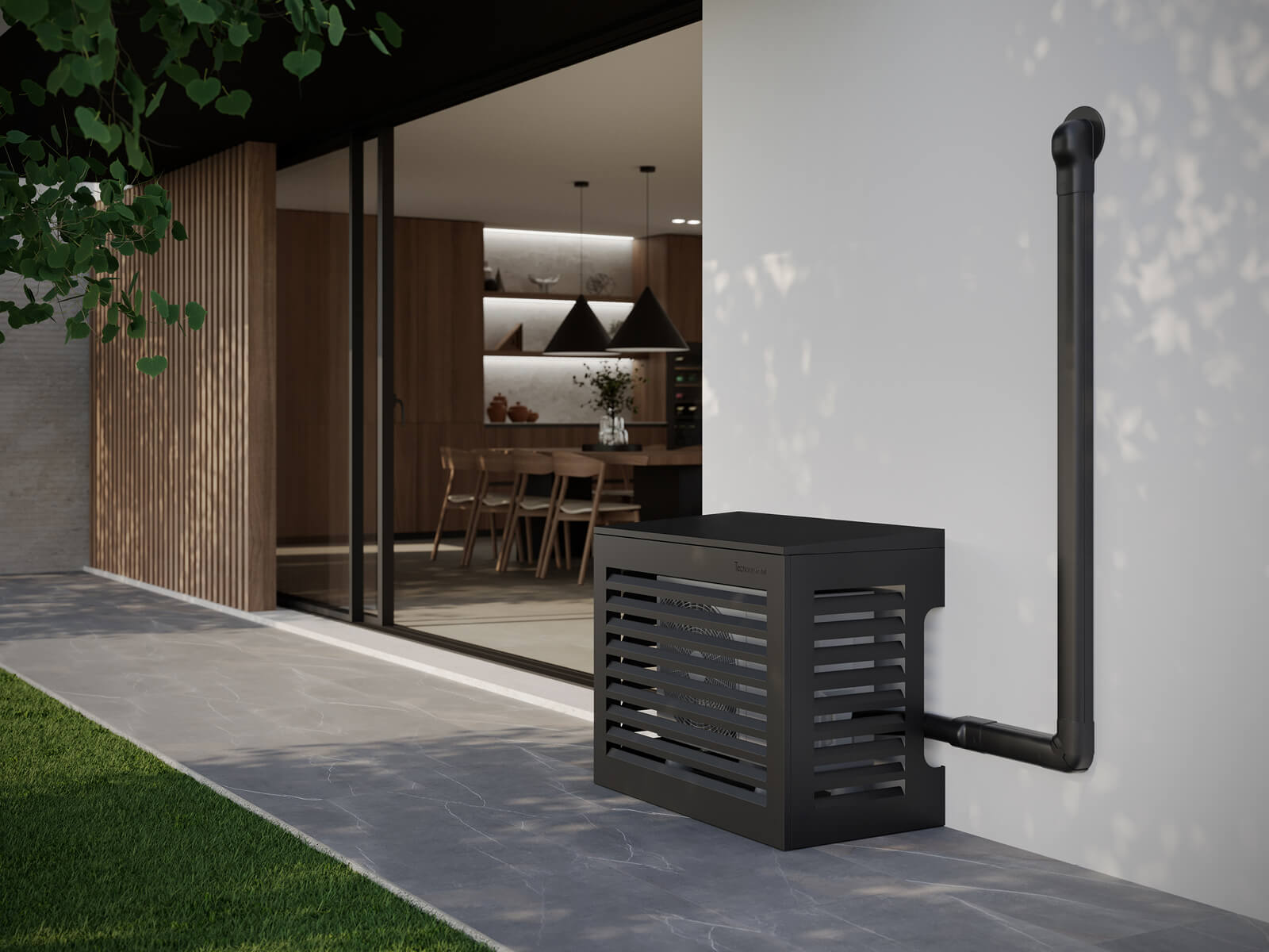 Le soluzioni sono progettate per facilitare l’installazione, grazie alla predisposizione per il fissaggio a muro e alle aperture laterali dedicate al passaggio di tubazioni e cablaggi, mantenendo la piena funzionalità dell’unità esterna.