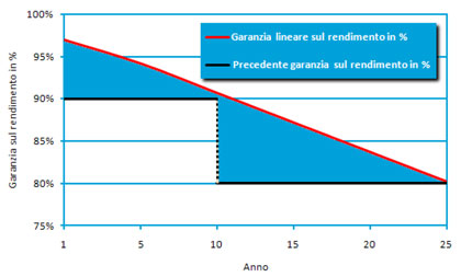 LE MIGLIORI CONDIZIONI DI GARANZIA - 25 ANNI DI GARANZIA LINEARE SULLE PRESTAZIONI• alfasolar garantisce, nel primo anno di garanzia, una potenza del • durante i successivi 24 anni viene garantita una diminuzione di potenza fino a • al termine del periodo di garanzia (25 anni dalla messa in funzione) la potenza |