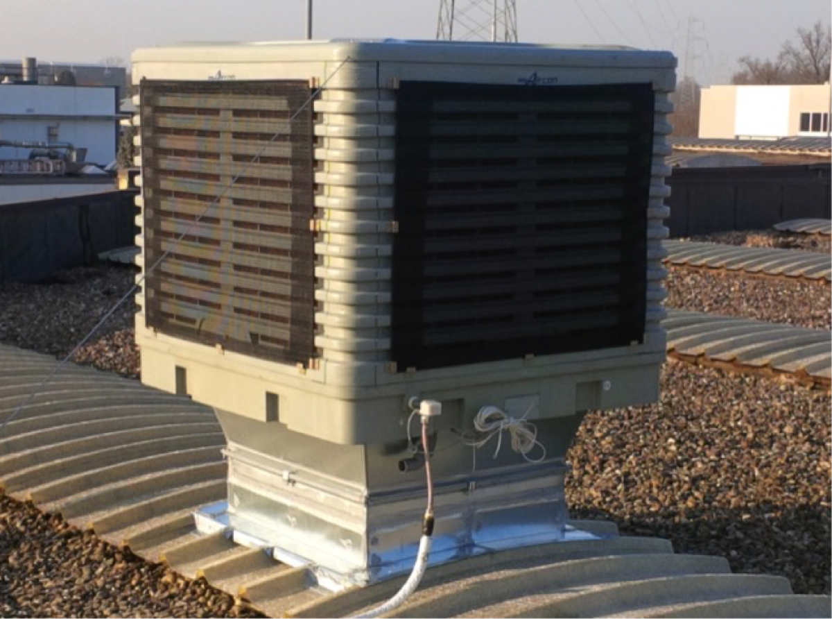 Nel raffrescamento evaporativo industriale l’effetto migliore di benessere si ottiene quando l’unità viene utilizzata in un ambiente ben ventilato ed asciutto, dove si preleva il 100% di aria fresca dall’esterno, senza ricircolo dell’aria interna, deve esserci una apertura sufficiente a far uscire l’aria immessa, utilizzando eventualmente anche aspiratori.