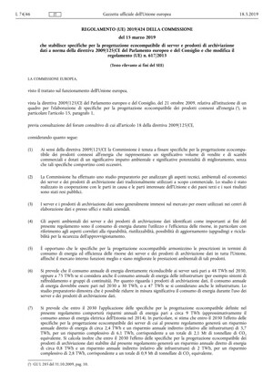 Il nuovo Regolamento 2019/424 nasce dalla matrice della Direttiva Ecodesign (2009/125/Ce) sulla progettazione ecocompatibile dei prodotti connessi all’energia e stabilisce le modalità specifiche di progettazione sostenibile da rispettare per poter immettere nel mercato e avviare i server e i prodotti per l’archiviazione dei dati online.