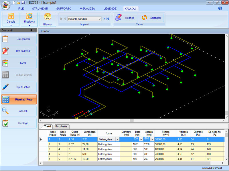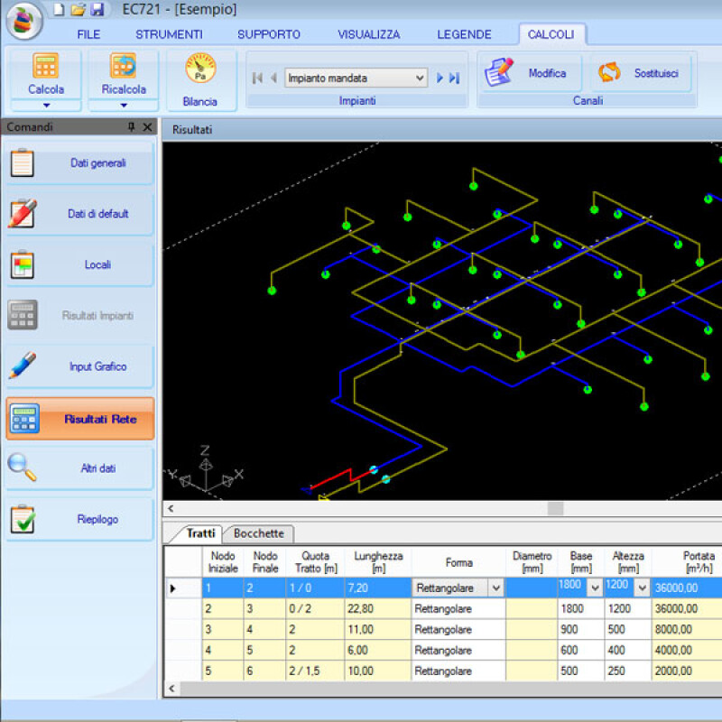 - Possibilità di disegnare la rete sia in pianta che in assonometria.