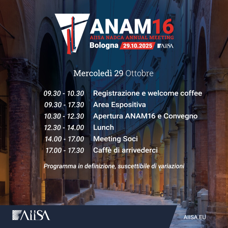 The 16th AIISA NADCA Annual Meeting (ANAM16), scheduled for October 29, 2025 at the UNA Hotels Bologna Fiera , represents the most important annual event for all professionals working in the indoor air quality and air hygiene sector.