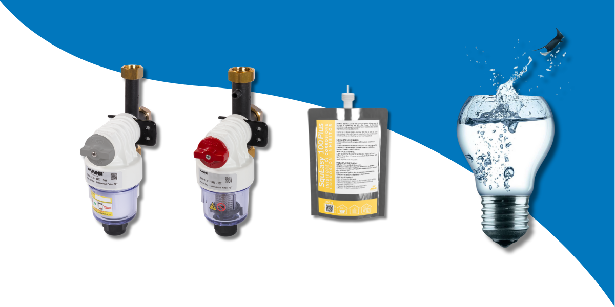 - SquEasy 100 Plus: a ready-to-use, pH-neutral liquid corrosion inhibitor with a patented universal adapter for connection to dirt separators or radiator valves. Prevents scale and corrosion, extending the life of the system.