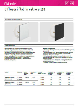 Flat square screen diffuser with frame for Ø125 mm duct/adapter, suitable for both supply and extraction of air in indoor environments.