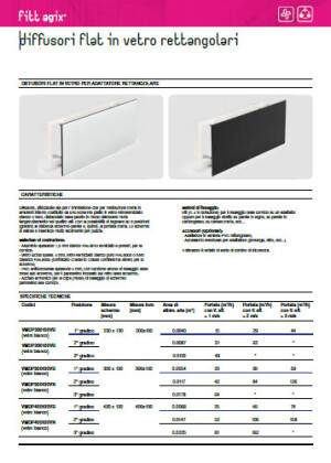 Flat rectangular screen diffuser, suitable for both air supply and extraction in indoor environments; composed of a flat back-painted glass screen in white or black.