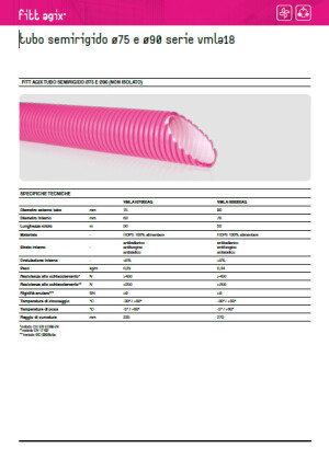 Semi-rigid round pipe by FITT Agix®, available in Ø75 and Ø90 diameters, featuring antimicrobial, antibacterial, and antistatic properties.
