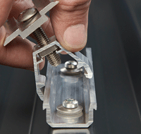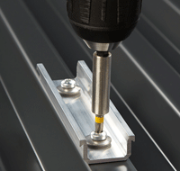 With this system the assembly of the photovoltaic modules on roofs of corrugated metal sheet with a thickness from 0.4 mm to 1.5 mm is very fast and requires few elements - a screwdriver, the base MetaSole, two special screws with washer, a clamp final or an intermediate mounting is accomplished with no runners.